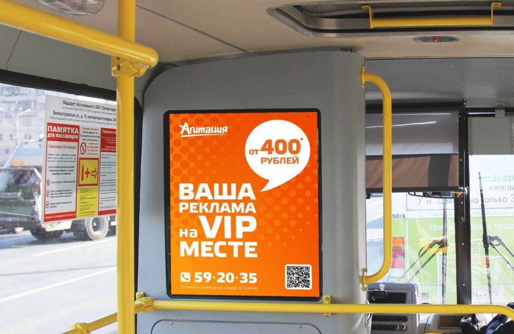 Реклама на транспортеРеклама на транспортеКак известно, привлекает внимание то, что движется. Поэтому реклама на транспорте бросается в глаза как пешеходам, так и водителям автомобилей. Тем более, что автобус с яркой рекламой привлекает взгляд намного больше, чем поток серых машин. Еще один плюс рекламы на транспорте – ее мобильность. Ваша реклама прокатится по нескольким районам города несколько раз за день. Реклама на транспорте– это также возможность выбора районов города, в которых живут, работают и отдыхают ВАШИ клиенты. С помощью таргетинга по районам можно варьировать и уровень дохода людей, которые увидят вашу рекламу. Интересный дизайн или необычное рекламное сообщение привлечет сотни глаз в местах самого массового скопления людей – на остановках, светофорах, у торговых и офисных центров. Компания «Агитация» предлагает изготовление и размещение рекламы на транспорте в Петрозаводске и Карелии. Более 45 автобусов. Запуск рекламы от 3-х дней Все вопросы по размещению рекламы на транспорте мы берем на себя!